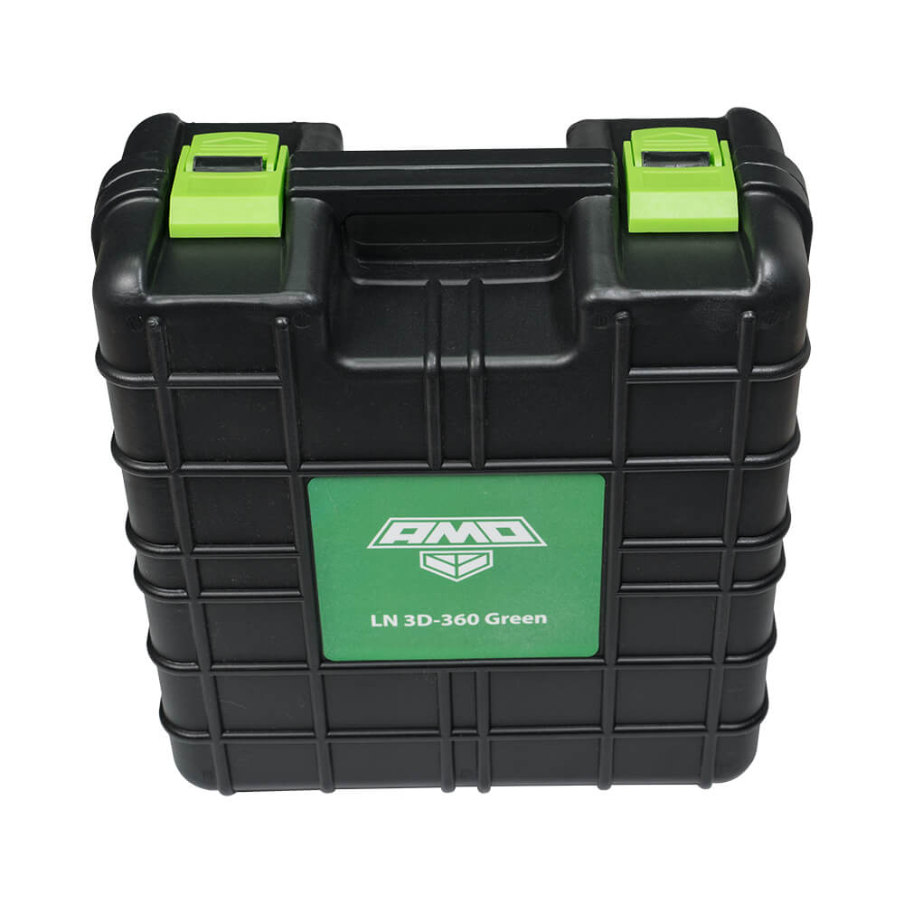 Для транспортировки лазерного нивелира AMO LN 3D-360 Green и всего комплекта аксессуаров служит прочный защитный кейс.