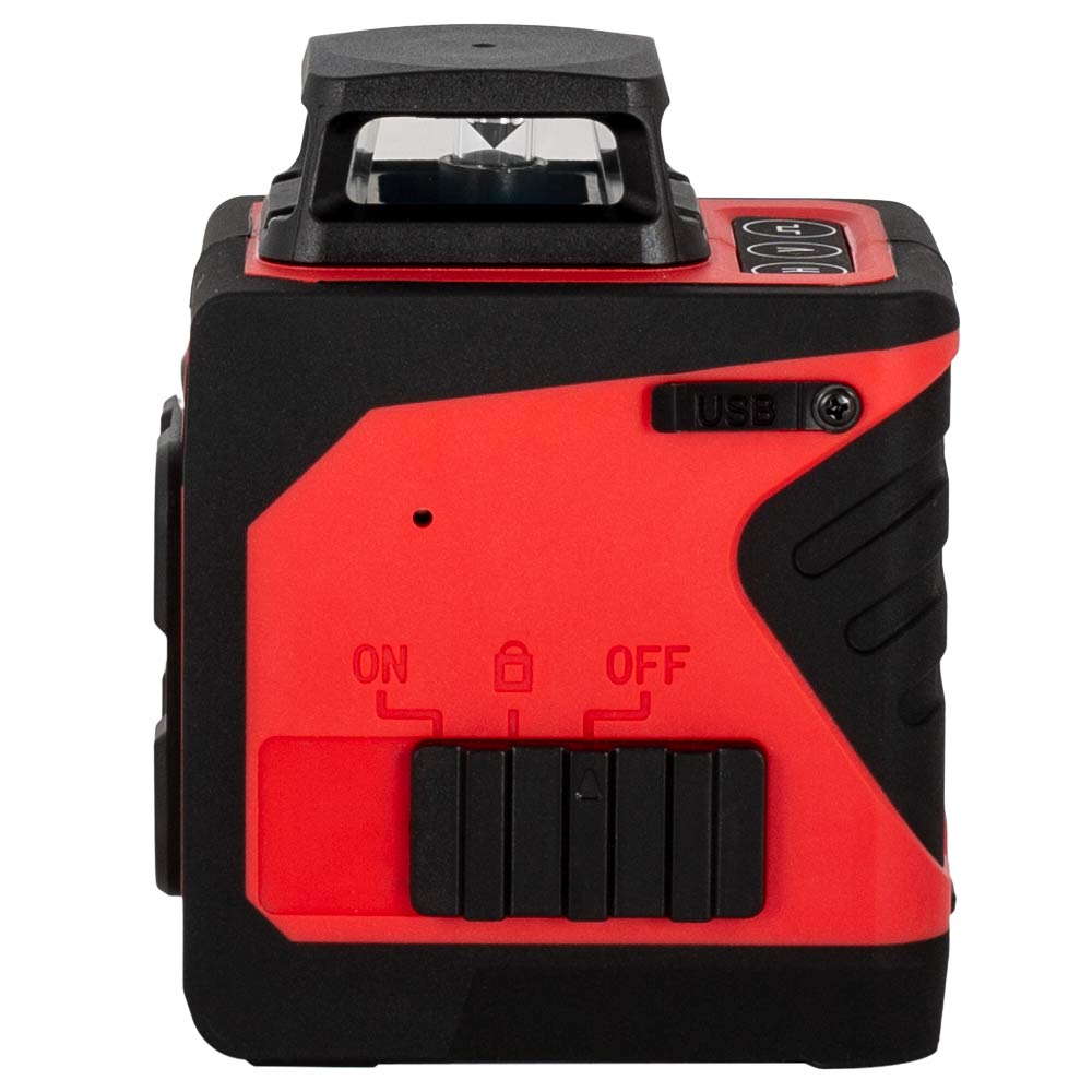 Лазерный нивелир AMO LN360 оборудован USB-портом для зарядки, который будет полезен в том случае, если используются аккумуляторы типа “АА”.