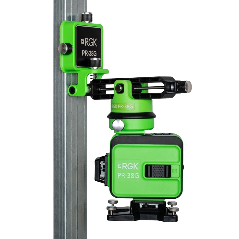 Вертикальные проекции лазерного уровня RGK PR-38G можно расположить почти в упор к стене. Это значительно упрощает выравнивание по углам и обеспечивает точность при штукатурно-отделочных работах и укладке плитки.