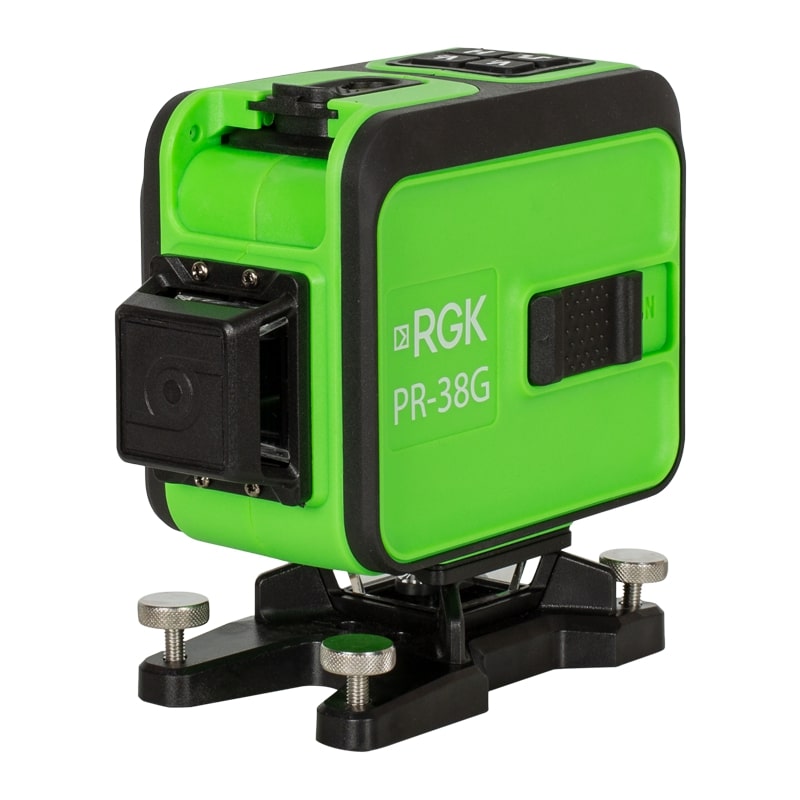 Корпус лазерного построителя плоскостей RGK PR-38G отлит из прочного шагреневого АБС-пластика, к которому не липнет пыль. Управляющие элементы и кромки, на которые обычно приходятся удары при падении, прорезинены. Рельефные кнопки и рычаг включения задействуются четко, ими удобно пользоваться в рабочих перчатках. Нивелир не боится попадания водяных брызг.