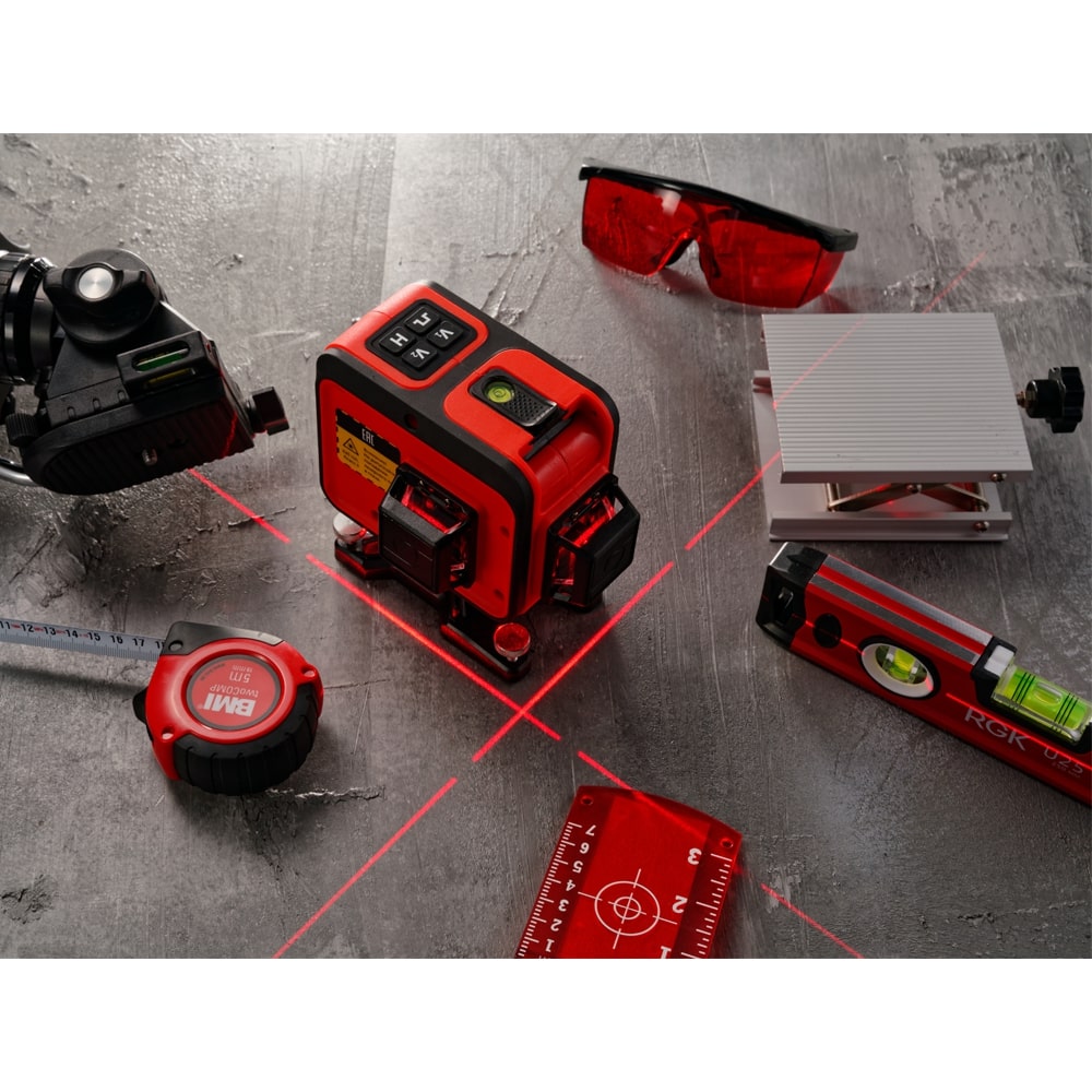 Лазерный нивелир RGK PR-38R - это уровень для профессионалов в сферах строительства и отделки помещений, проецирующий 3 плоскости по 360°: 1 горизонтальную и 2 взаимно перпендикулярные вертикальные. Горизонтальная плоскость расположена на высоте 2.3 см от пола, что будет особенно полезно при укладке плитки и монтаже стяжки. Ключевые особенности этого прибора - точность ±0,2 мм/м и эффективная дальность до 20 м - обеспечивают безупречное качество работ.
