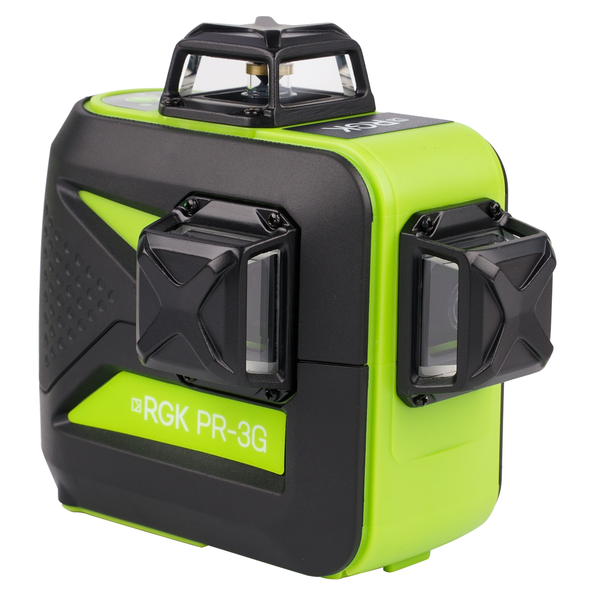 Лазерный уровень RGK PR-3G сделан из прочного пластика, при этом большая часть корпуса дополнительно защищена толстыми резиновыми вставками, которые гасят энергию ударов при падениях. Степень защиты IP54 гарантирует, что строительная пыль и несильный дождь никак не повлияют на работоспособность устройства. С нивелиром можно работать при температурах до -10 °С , что дает возможность провести разметку в неотапливаемых помещениях.