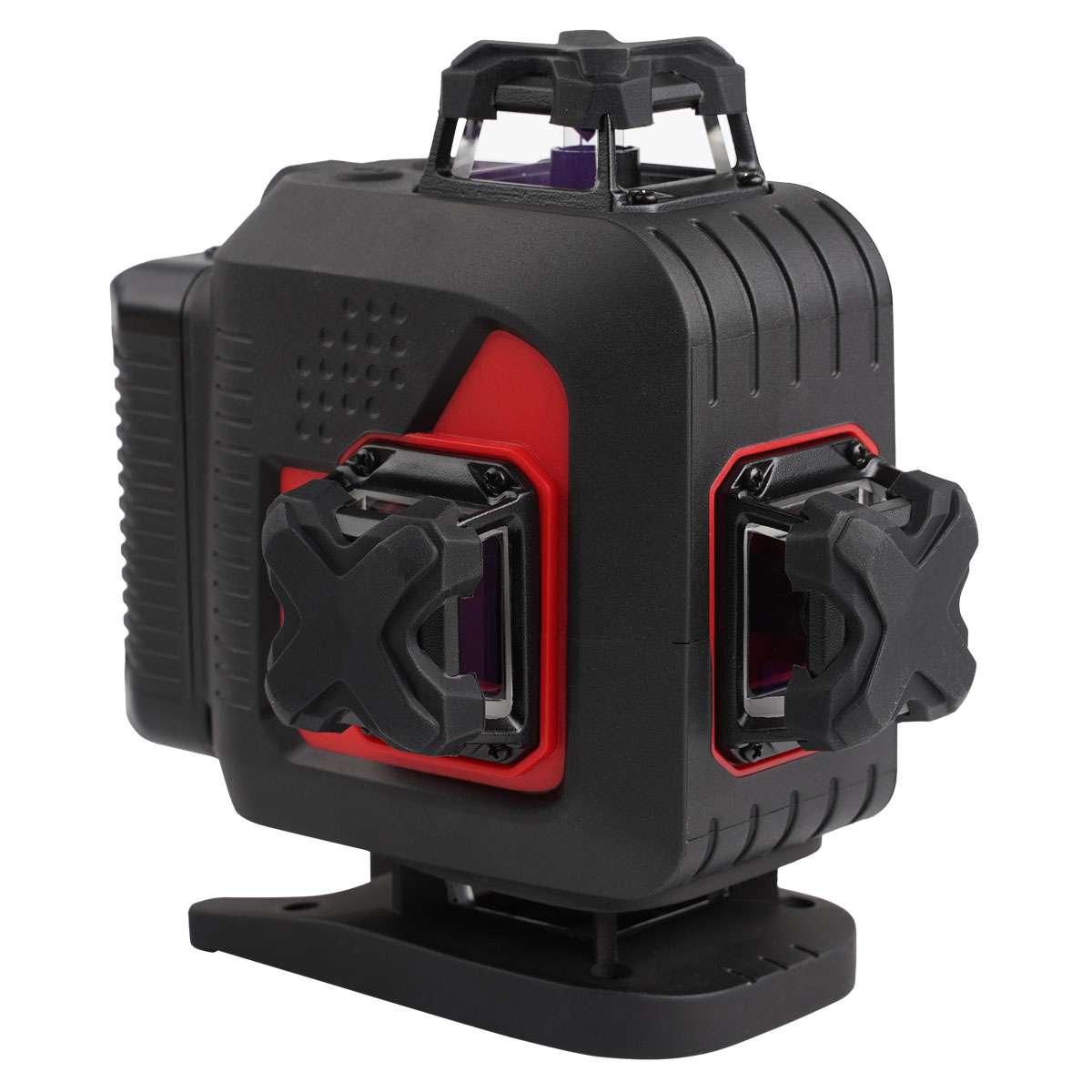 Корпус лазерного нивелира RGK PR-4D RED по всему периметру защищен от падений и ударов толстыми резиновыми вставками. Нижняя платформа, оснащенная нескользящими ножками, и все призмы выполнены из металла. Предусмотрена съемная резиновая защита излучателей. Благодаря уплотнителям и качественной подгонки всех деталей устройство полностью соответствует классу IP54, а значит не боится строительной пыли и водяных брызг.