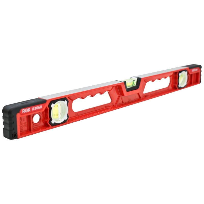 Металлический корпус строительного уровня RGK U3060 выполнен из литого металлопрофиля, за счет чего, он не имеет неровностей, швов и стыков. Литая конструкция корпуса устойчива также к коррозии и ударам.