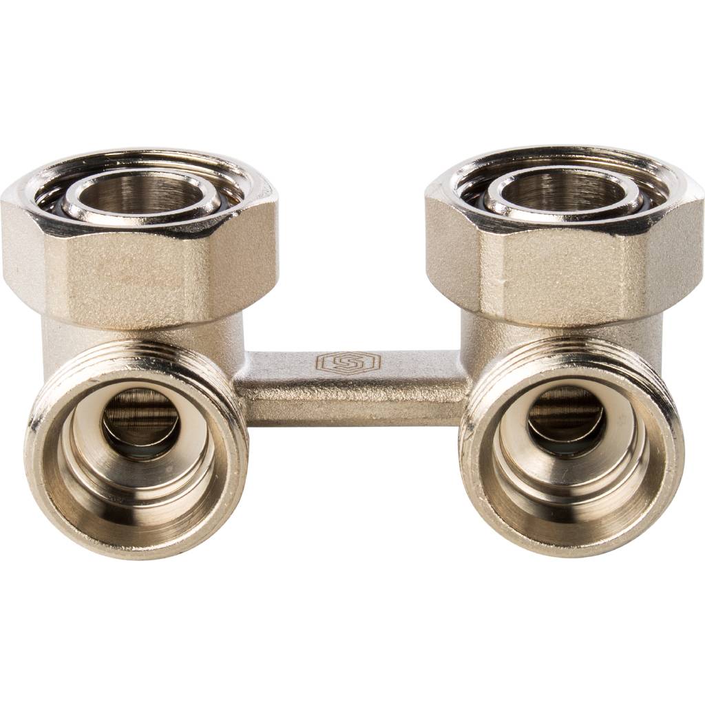 Фитинг двойной угловой со встроенным шаровым краном 3/4" Stout (для двухтрубной системы) SVH-0004-000020