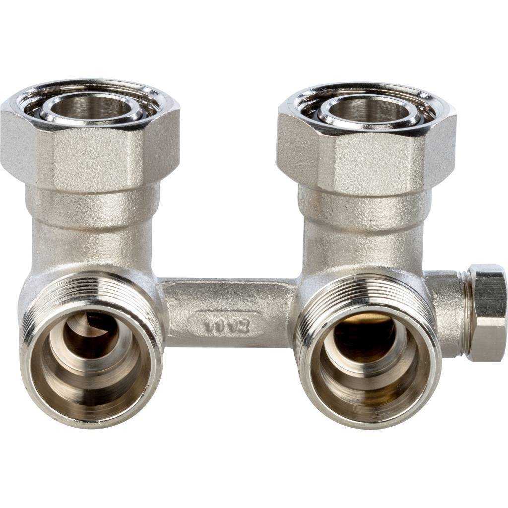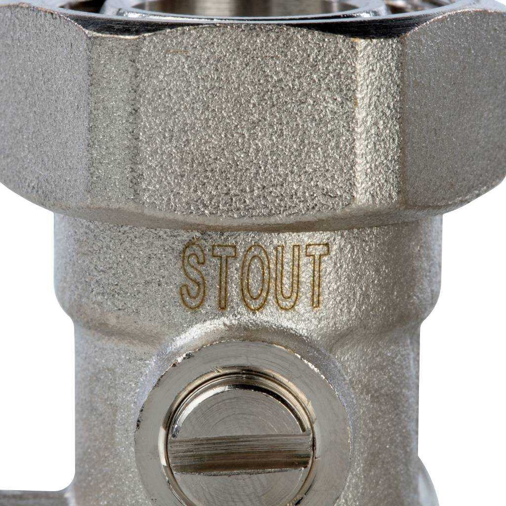 Фитинг двойной угловой со встроенным шаровым краном 3/4" с байпасом Stout (для однотрубной системы) SVH-0003-000020