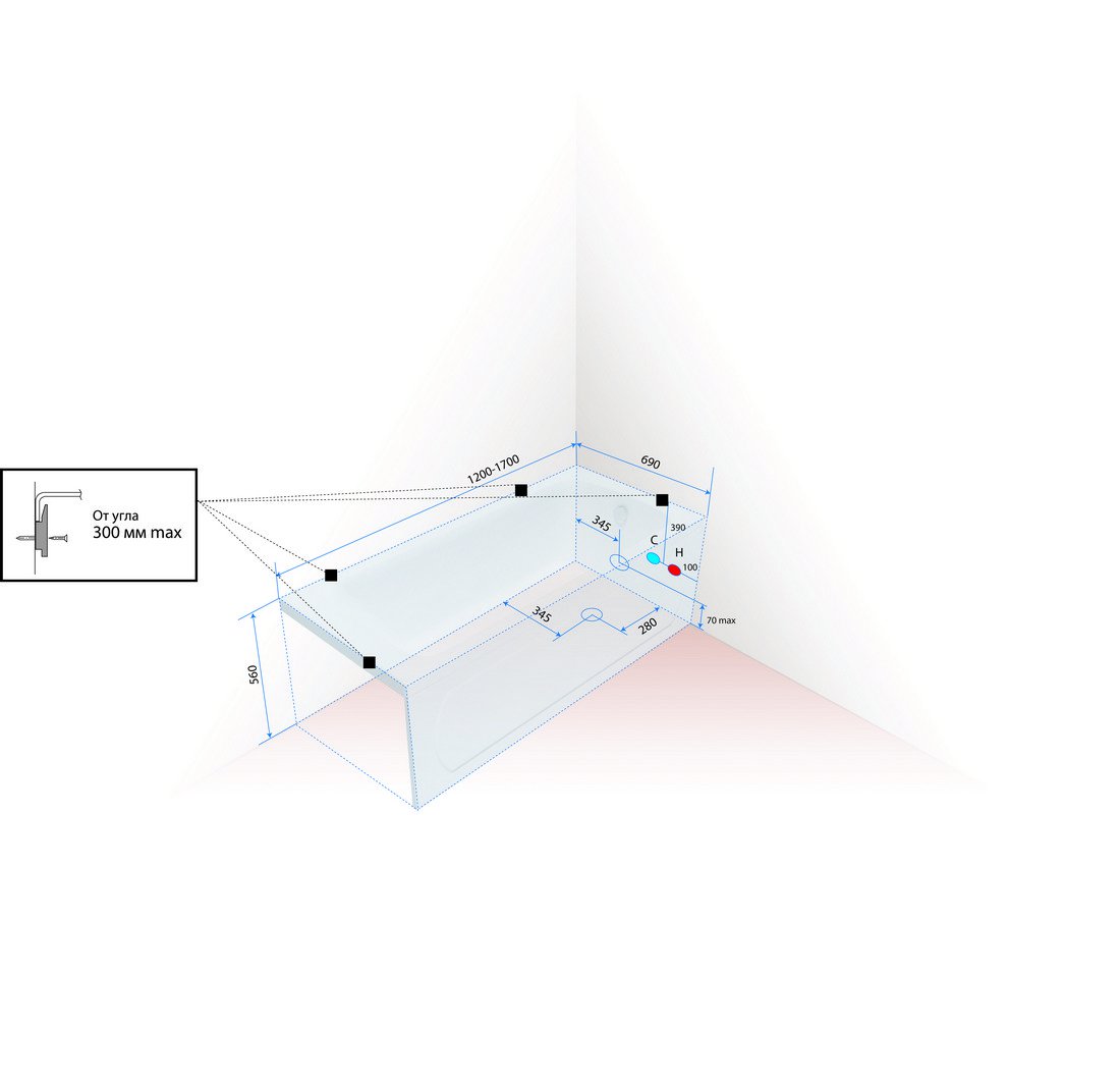 Состав поставки: Ванна акриловая