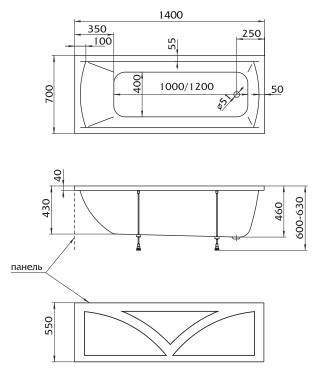 Экран фронтальный для ванны 1MarKa Classic 1400x700