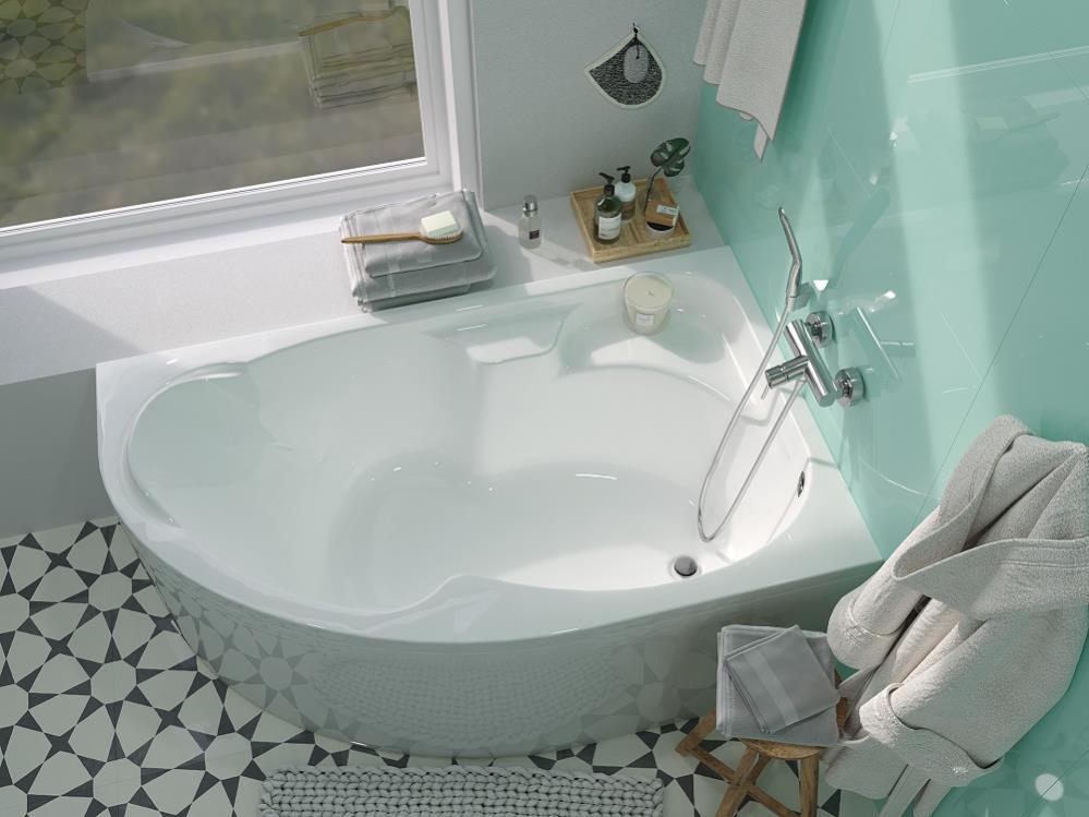 Асимметричная акриловая ванна Diana – просторная форма чаши позволяет принимать как ванну, так и душ.