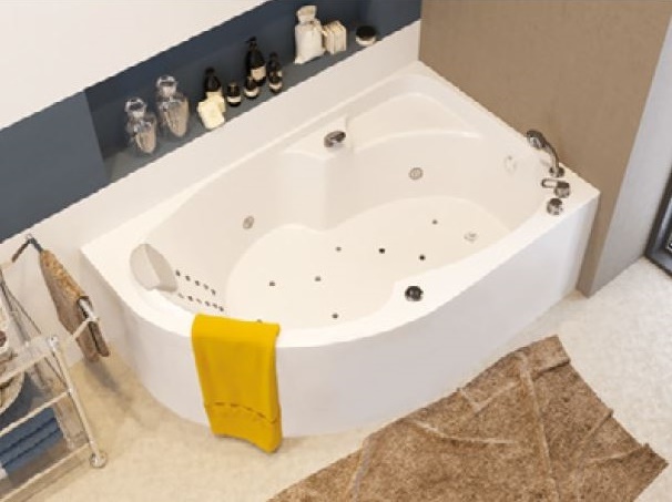 Асимметричная акриловая ванна Diana – просторная форма чаши позволяет принимать как ванну, так и душ.