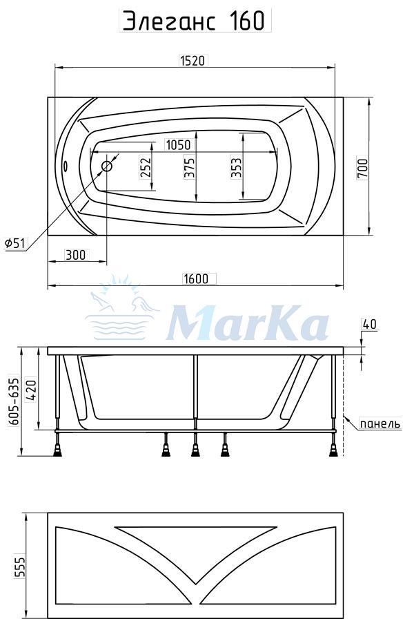 Каркас для ванны 1MarKa Elegance 1600х700<