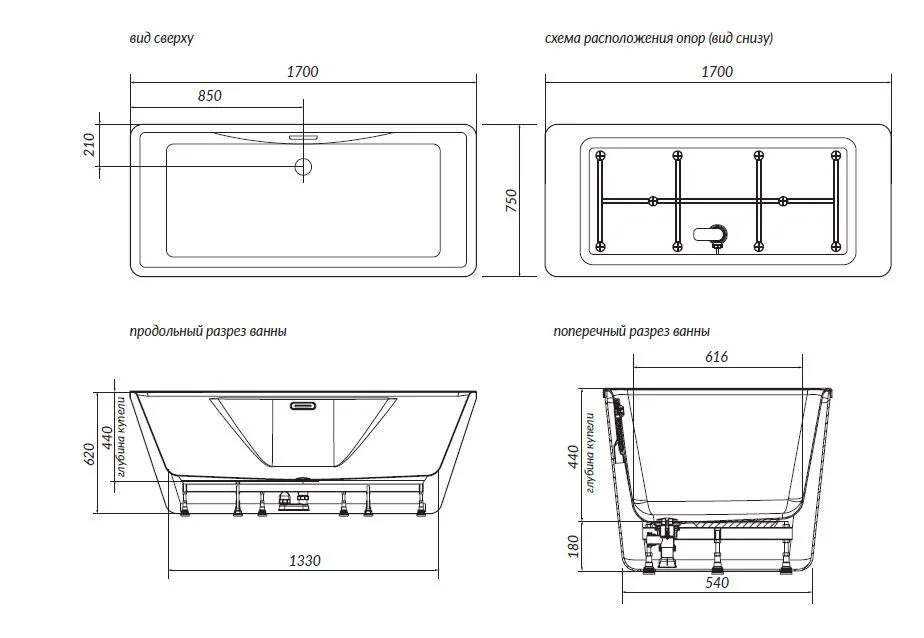 Ванна акриловая 1Marka Icon 170x75 белая (01айк1775)