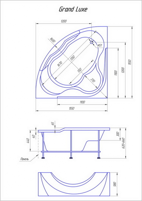 Каркас для ванны 1MarKa Luxe 155