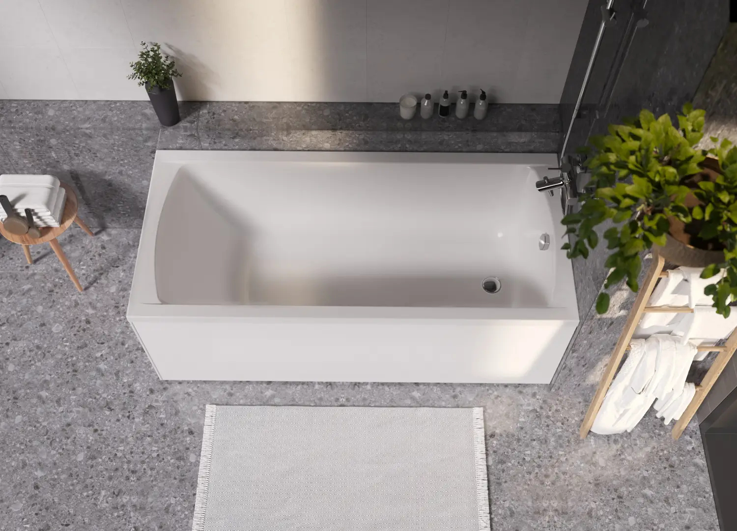 Прямоугольная симметричная акриловая ванна – отличное решение для интерьера. Универсальный дизайн модели гармонично смотрится в ванной комнате как в классическом, так и в современном стиле.