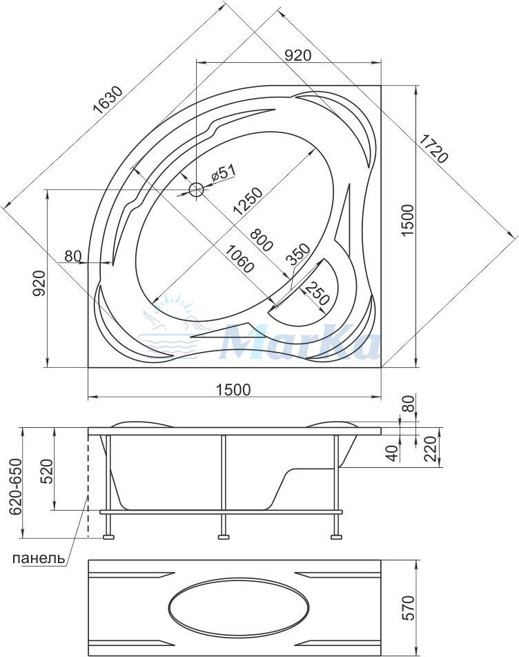 Каркас для ванны 1MarKa Palermo 150