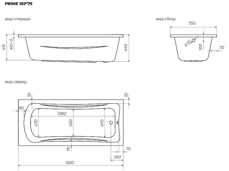 Ванна акриловая 1Marka Prime 150x75 белая (01пра1575)
