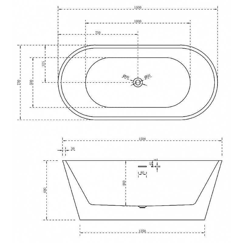 Ванна акриловая Abber 150*75 белая (AB9320-1.5)