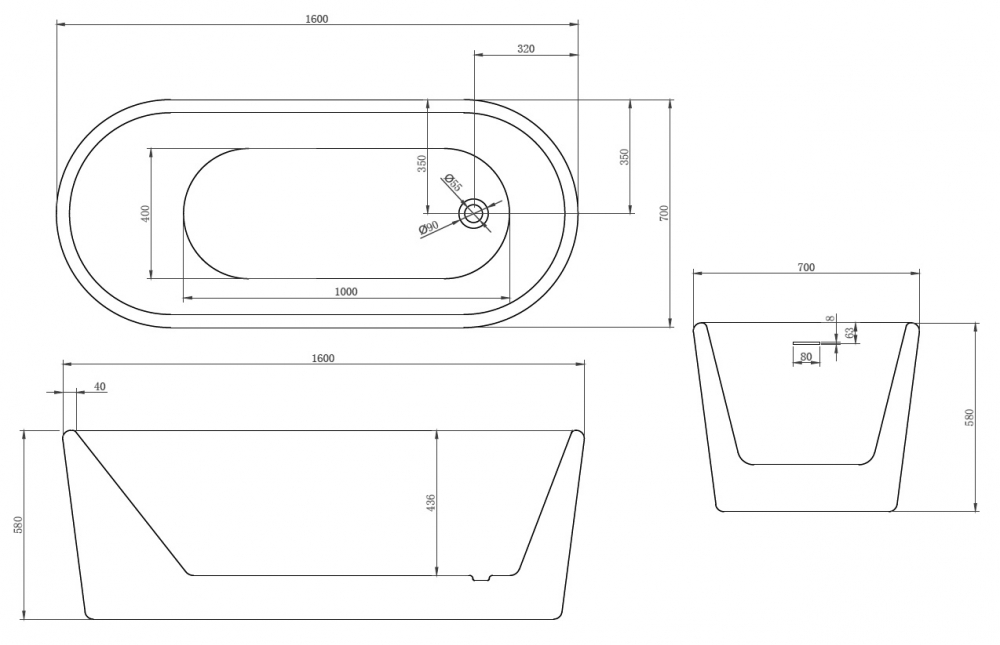 Ванна акриловая Abber 160x70 белая (AB9272-1.6)