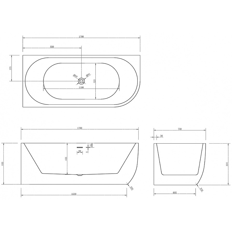 Ванна акриловая Abber 170*75 белая (AB9315 L)