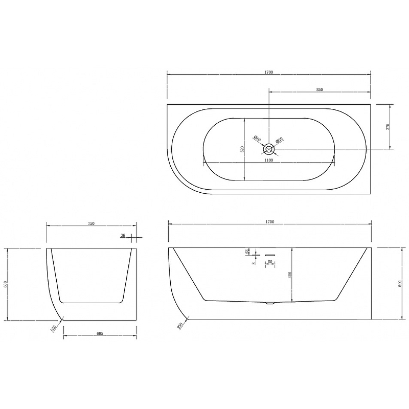 Ванна акриловая Abber 170*75 белая (AB9315 R)
