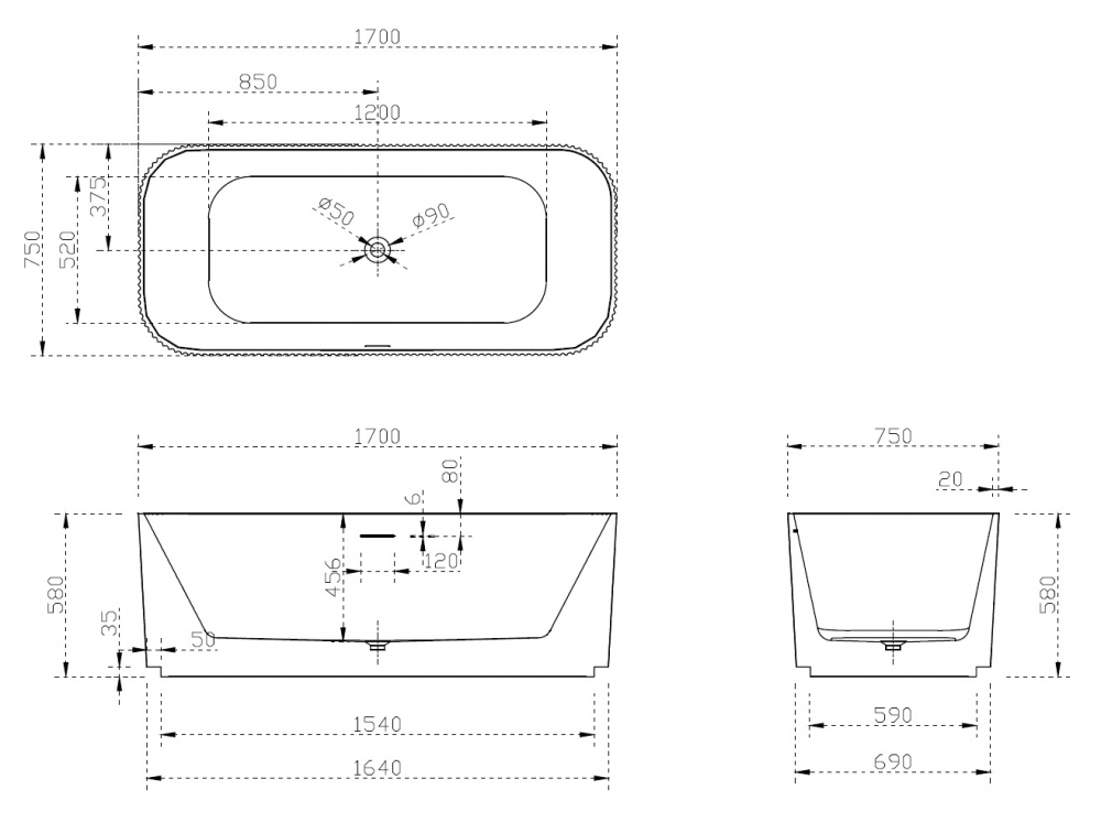 Ванна акриловая Abber 170*75 белая (AB9363-1.7)