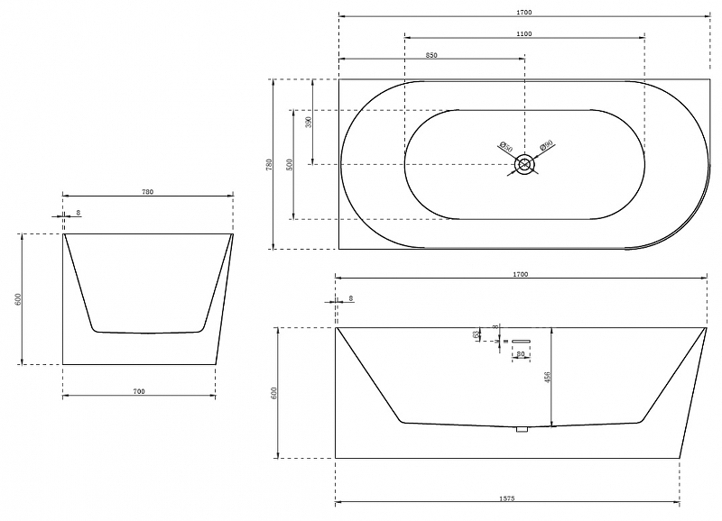Ванна акриловая Abber 170*78 белая (AB9258-1.7 L)