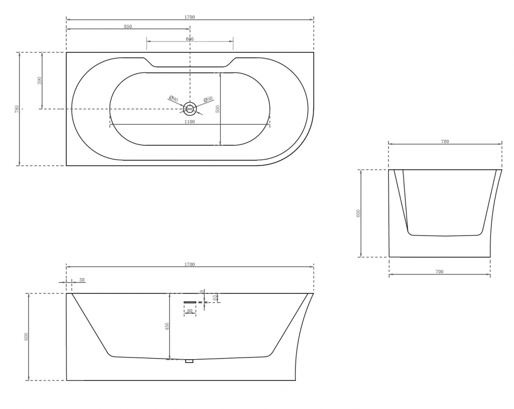 Ванна акриловая Abber 170*78 белая (AB9335-1.7 L)