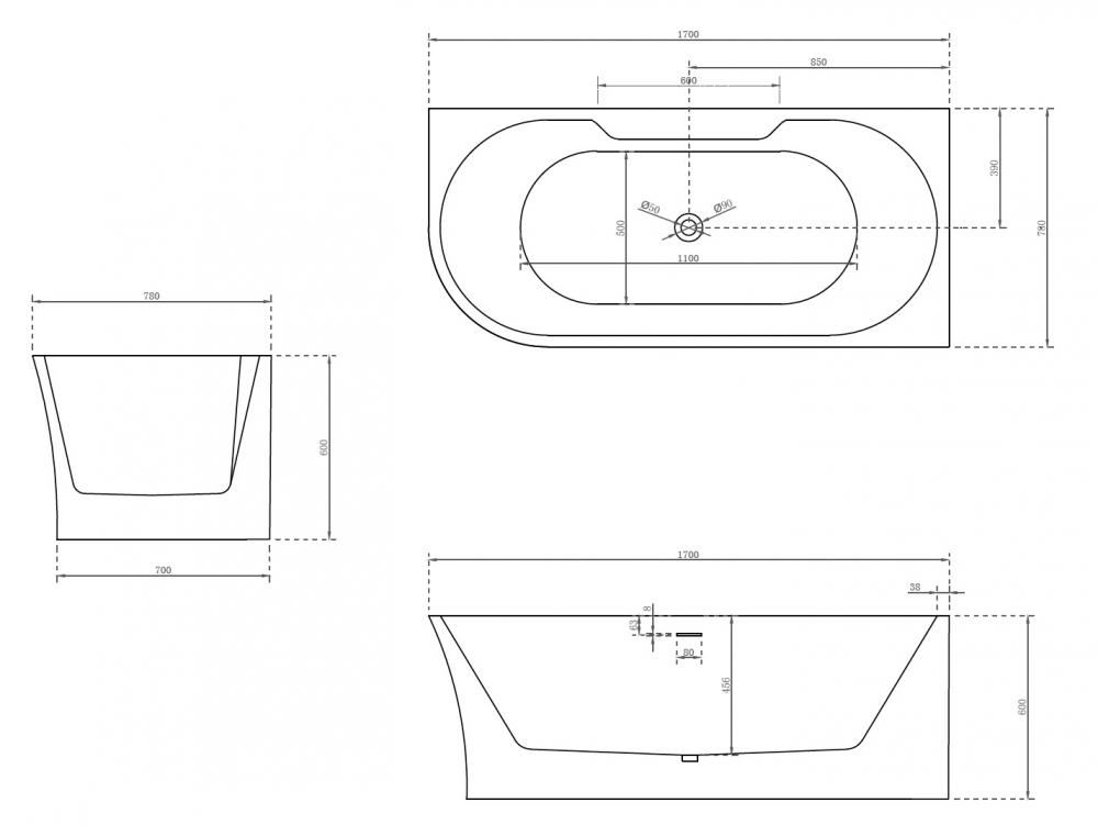 Ванна акриловая Abber 170*78 белая (AB9335-1.7 R)
