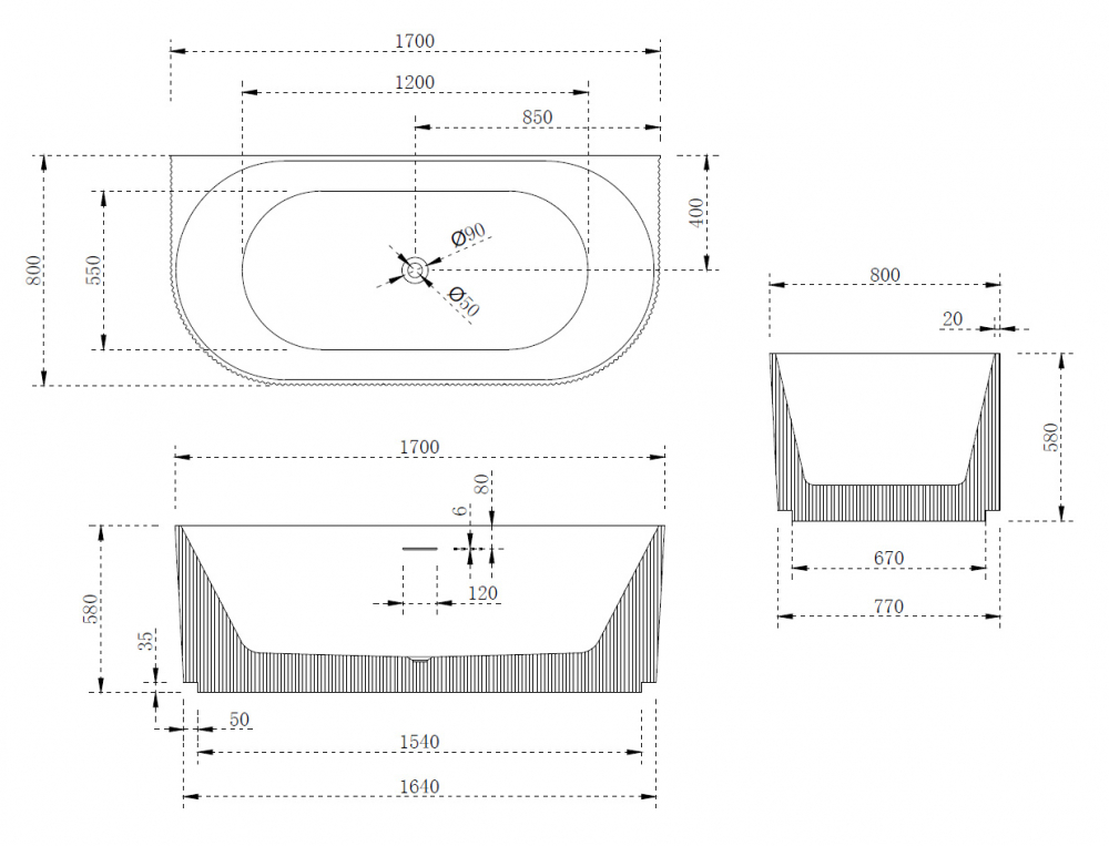 Ванна акриловая Abber 170*80 белая (AB9330-1.7)