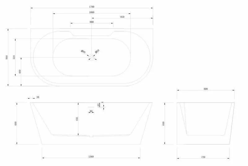 В комплекте поставки: ванна, слив-перелив