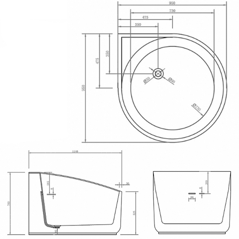 Ванна акриловая Abber 95*95 белая (AB9305)