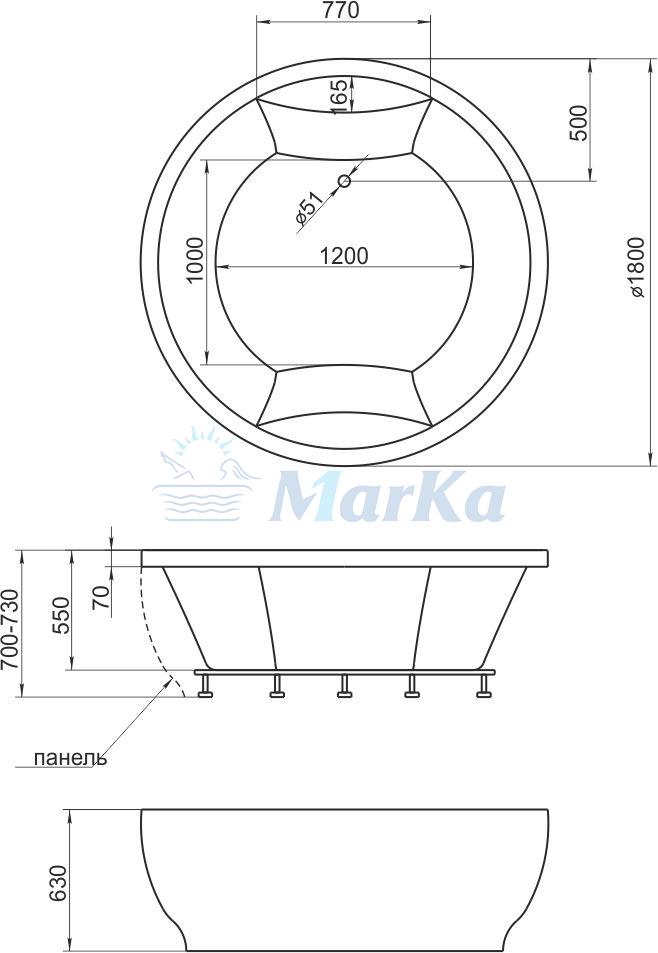 Ванна акриловая Aima Omega 180х180 без гидромассажа