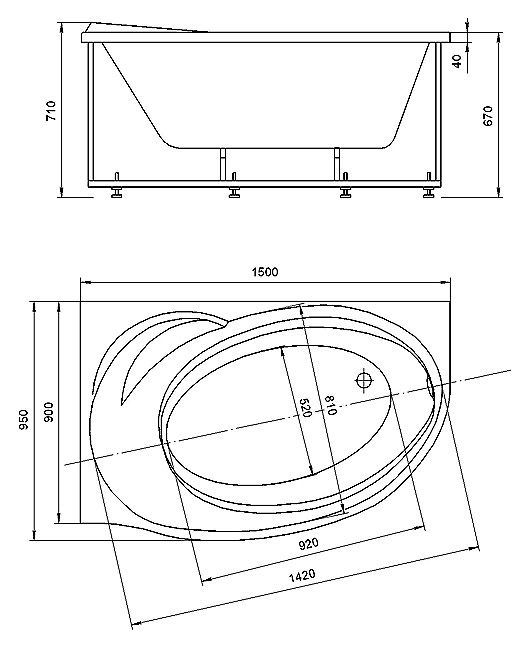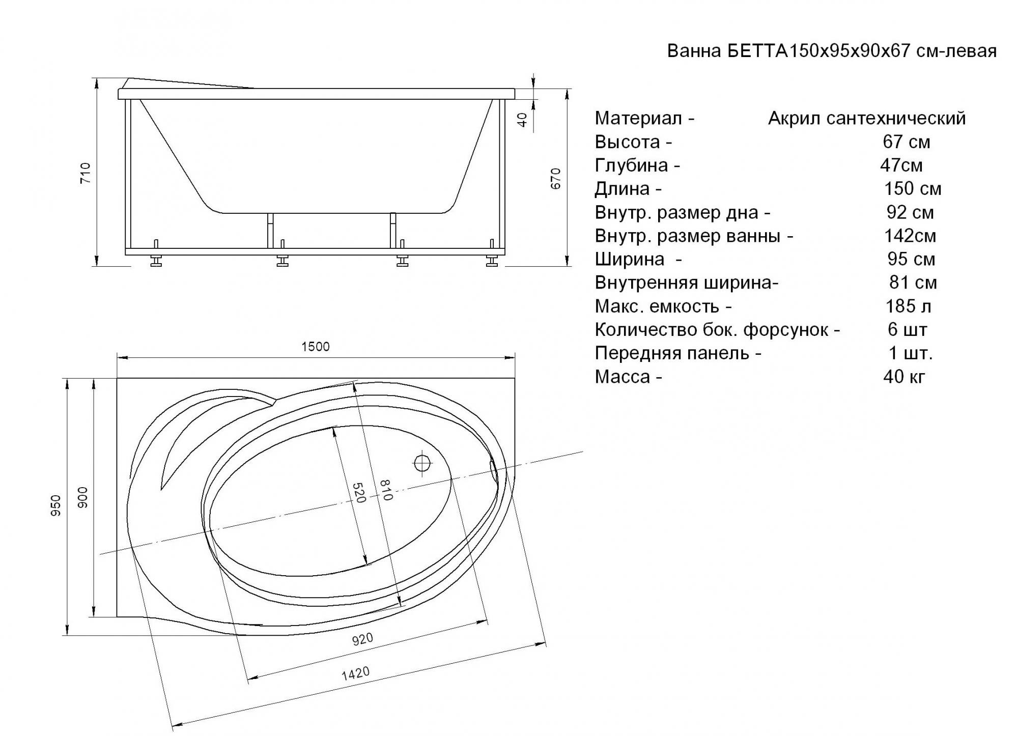 - 1. Ванна акриловая Акватек Бетта 150х95 L без гидромассажа