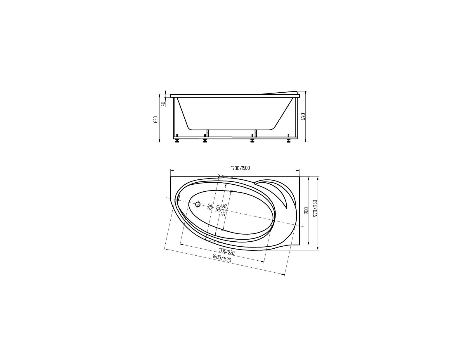 - 1. Ванна акриловая Акватек Бетта 170х97 R без гидромассажа