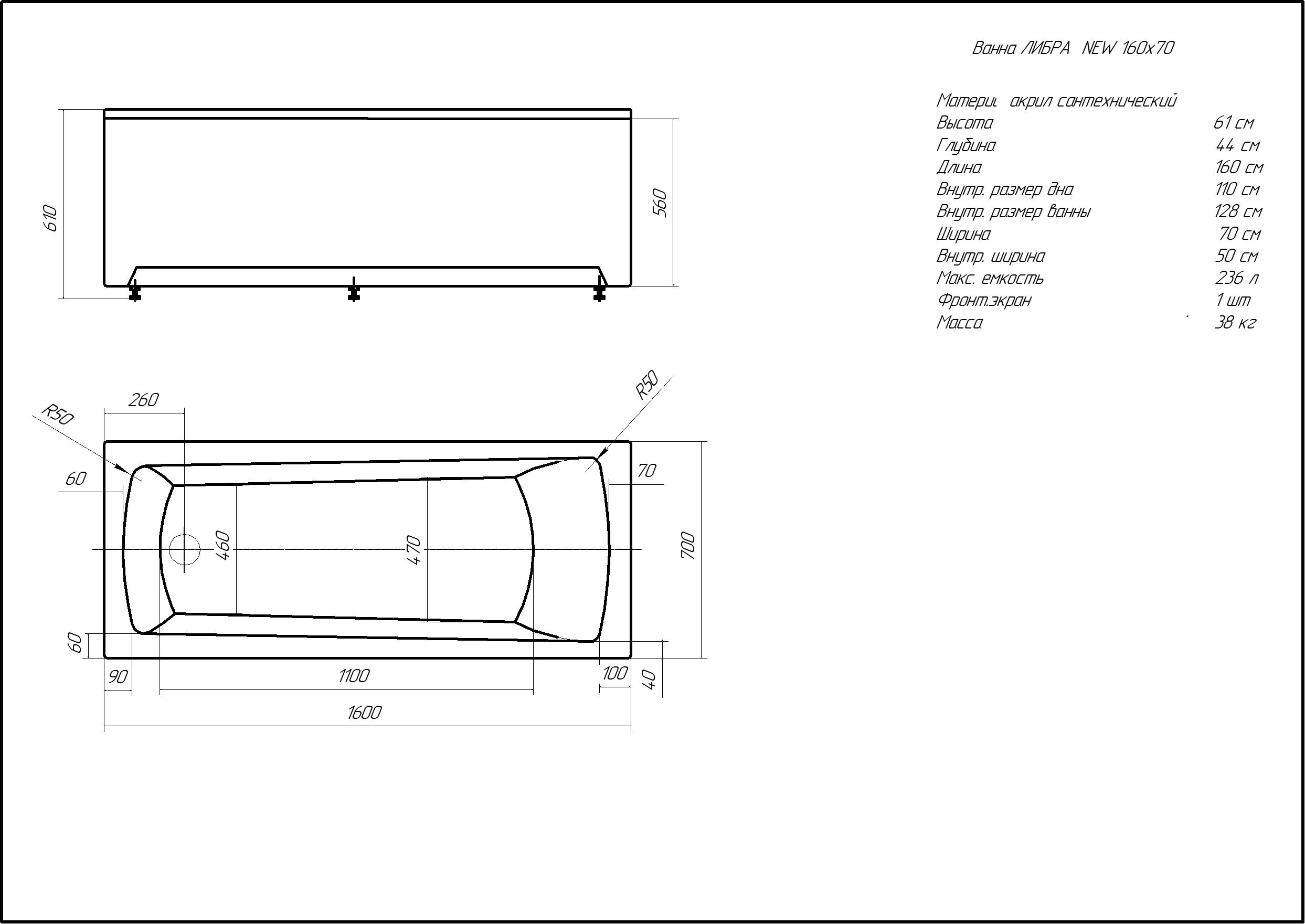 - 1. Ванна акриловая Акватек Либра New 150х70 без гидромассажа