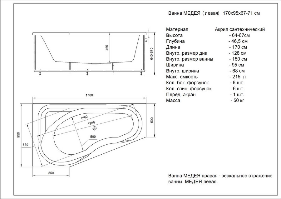 - 1. Ванна акриловая Акватек Медея 170х95 L без гидромассажа