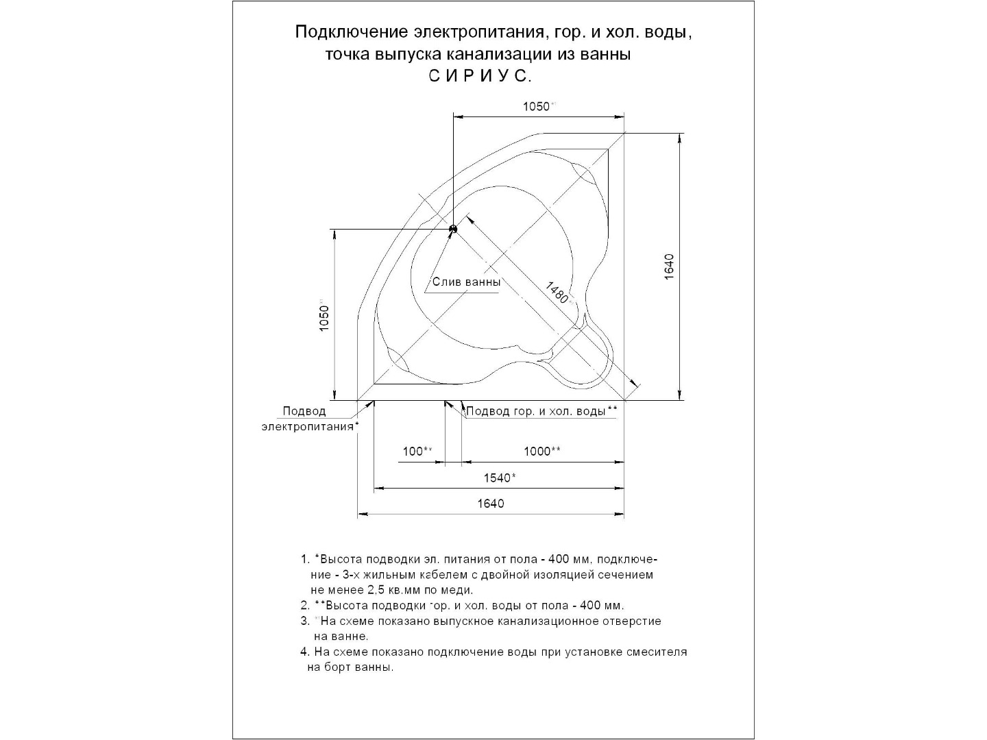 - 1. Ванна акриловая Акватек Сириус 164х164 без гидромассажа