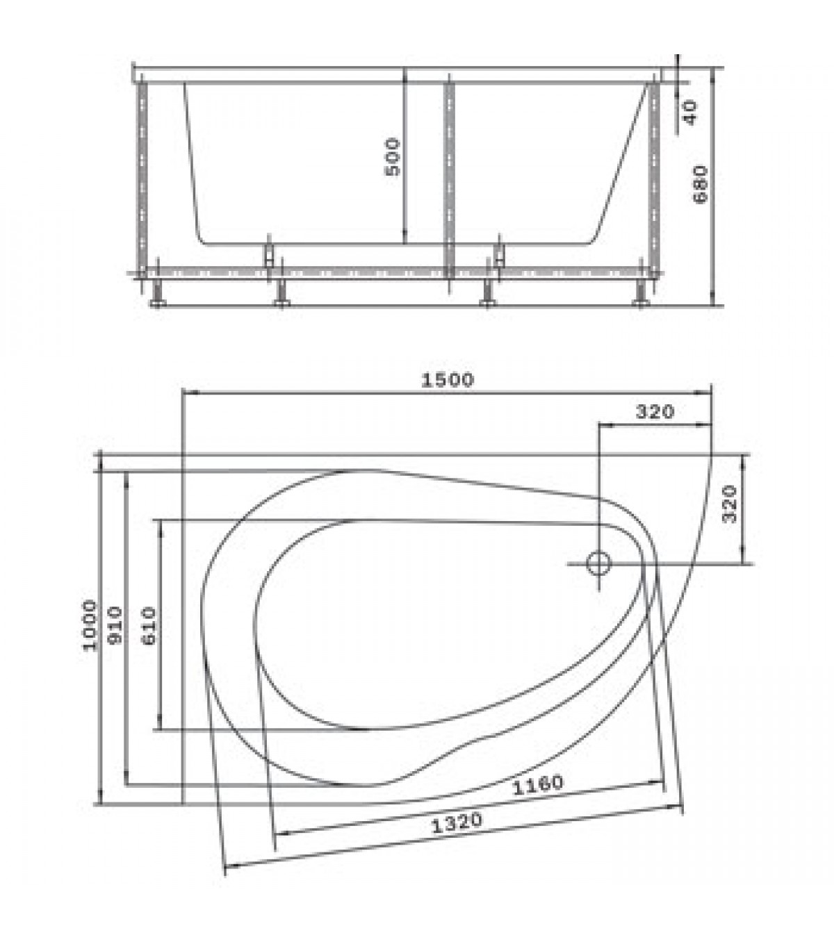 Карниз для асимметричной ванны Акватек Вирго 150, дуга