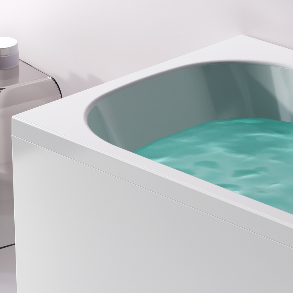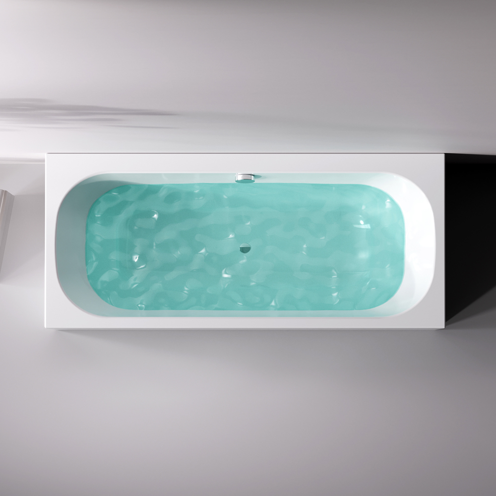 Впервые в доступном сегменте ванна с центральным сливом-переливом (признак премиального сегмента).
