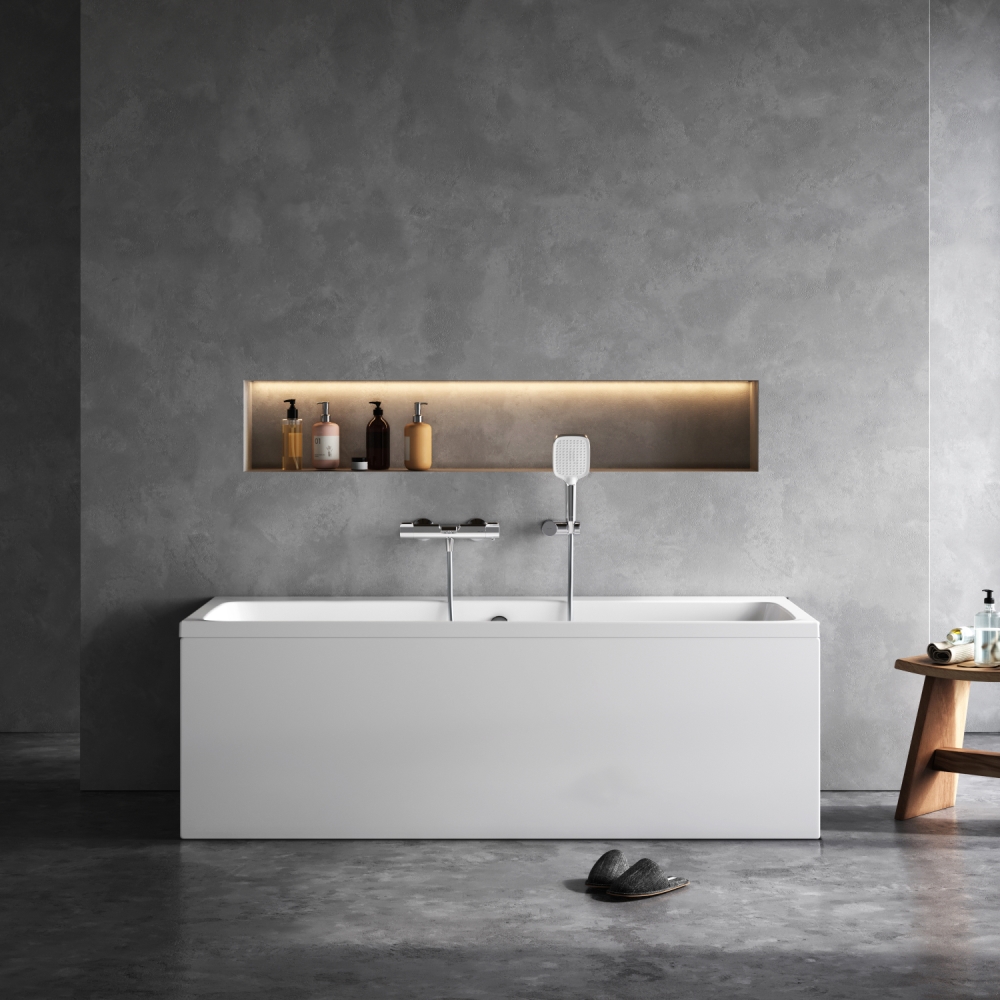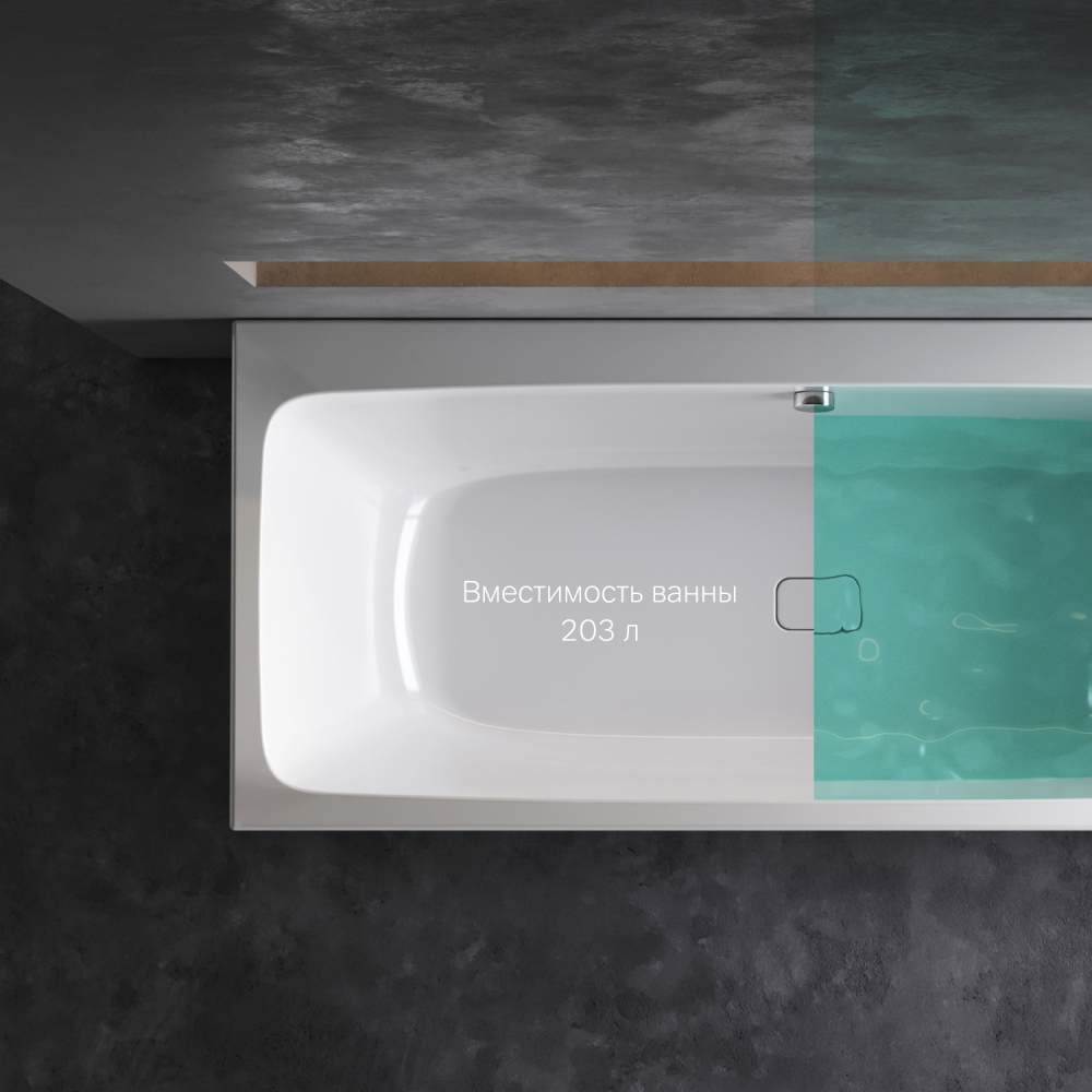 Широкий борт с одной стороны ванны добавляет дополнительное пространство для хранения. Теперь даже самое небольшое помещение может быть использовано оптимальным образом.