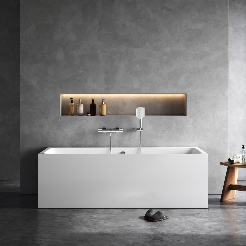 Широкий борт с одной стороны ванны добавляет дополнительное пространство для хранения. Теперь даже самое небольшое помещение может быть использовано оптимальным образом.
