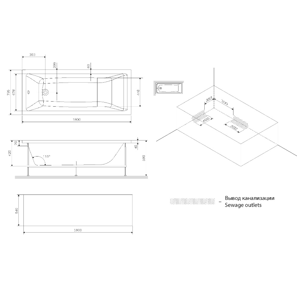 Дополнительные аксессуары для ванн GEM: каркас W93A-180-080W-R фронтальная панель W93A-180-080W-P слив-перелив W90A-000-OFI - приобретаются отдельно.