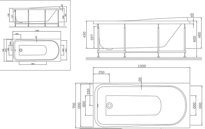 Каркас для ванны AM.PM Like 150х70 (W80A-150-070W-R)Экран фронтальный для ванны AM.PM Like 150х70 (W80A-150-070W-P)