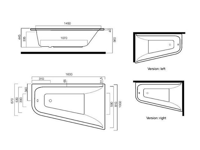 Ванна акриловая AM.PM Spirit 160x100 L (W72A-160L100W-A2) - ассиметричная, без слива/перелива, левосторонняя.