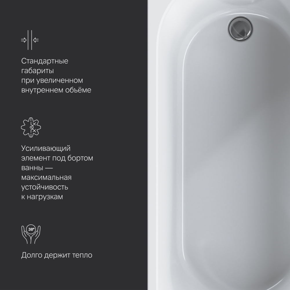 Компактная проекция 160х70 см позволяет вписать ванную даже в небольшое помещение. А универсальный дизайн подойдет как для современного так и для классического интерьера.