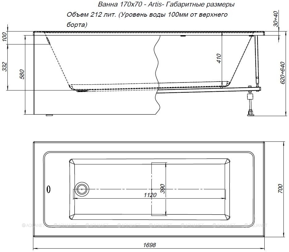 Ванна акриловая Aquanet Artis 170x70x64 белая (362835)