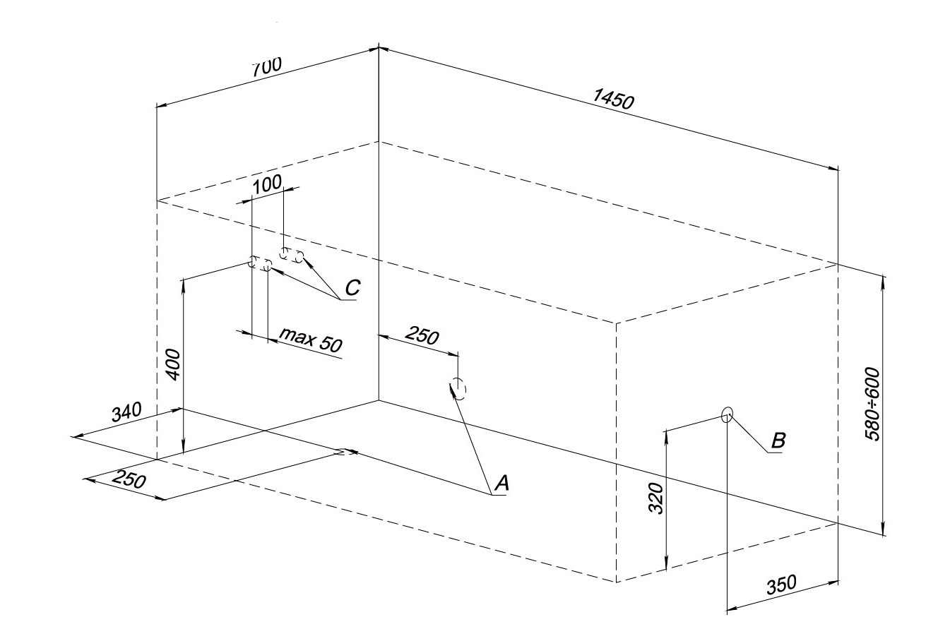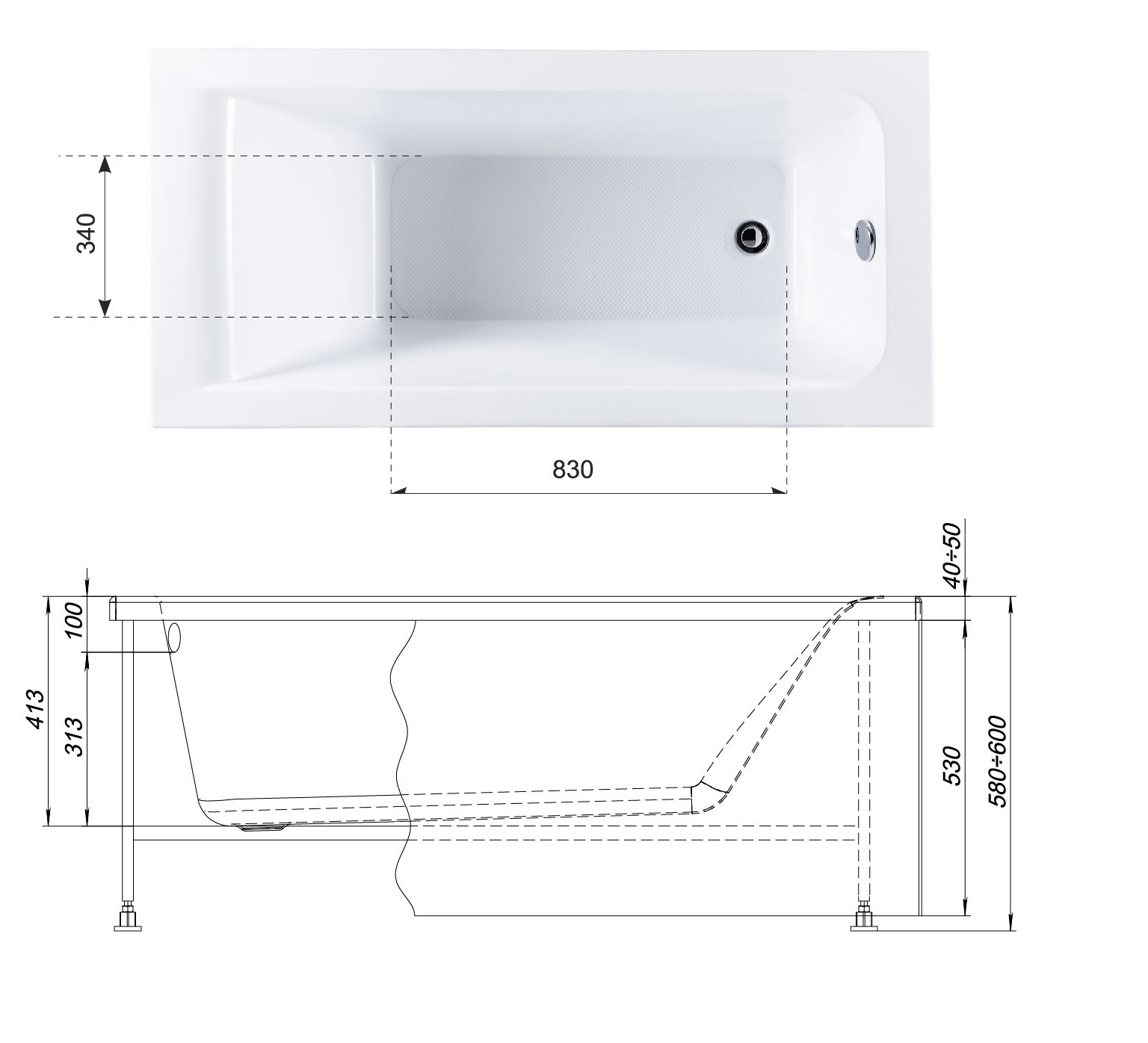 Чаша в этой ванне устроена таким образом, что для обозначенных размеров в ней достигнут максимально возможный внутренний объем, а именно 145 литров, и это при комфортной глубине в 413 мм от слива ванны до борта.