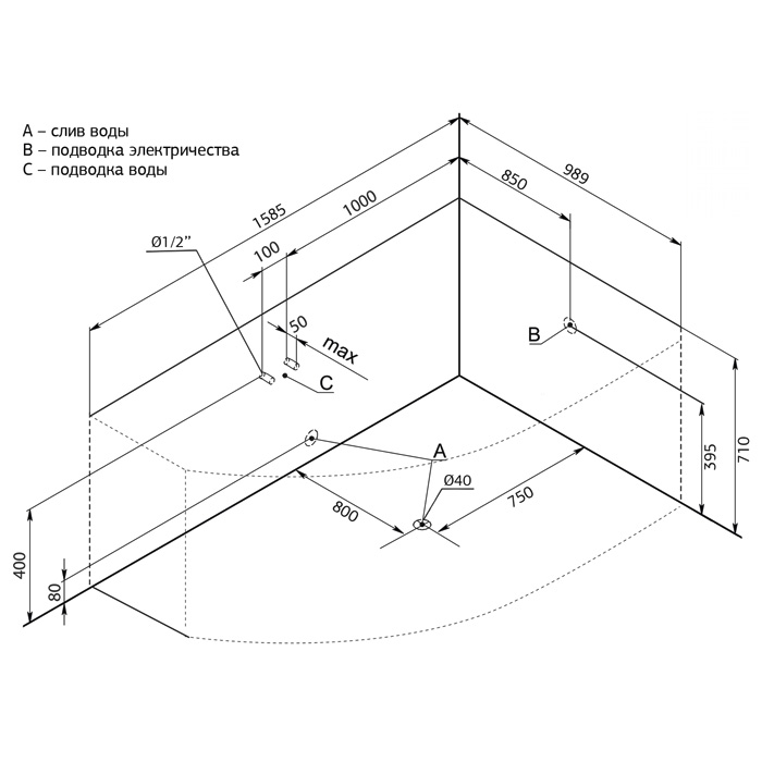 Расположение слива-перелива: по центру.
