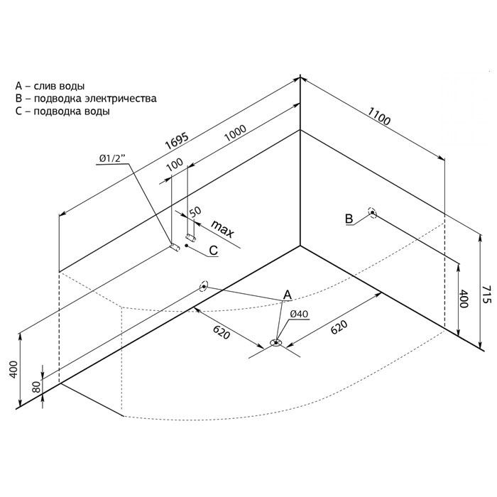 Фронтальная панель, каркас, слив-перелив в стоимость не входят и приобретаются отдельно.