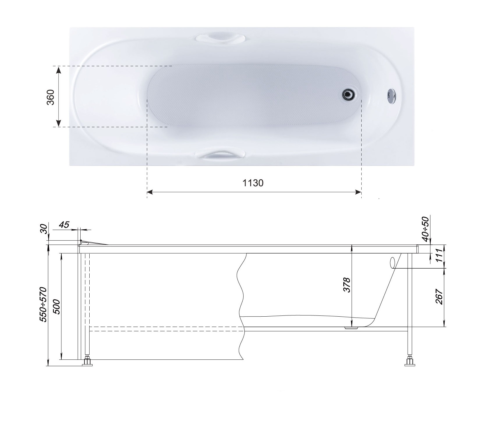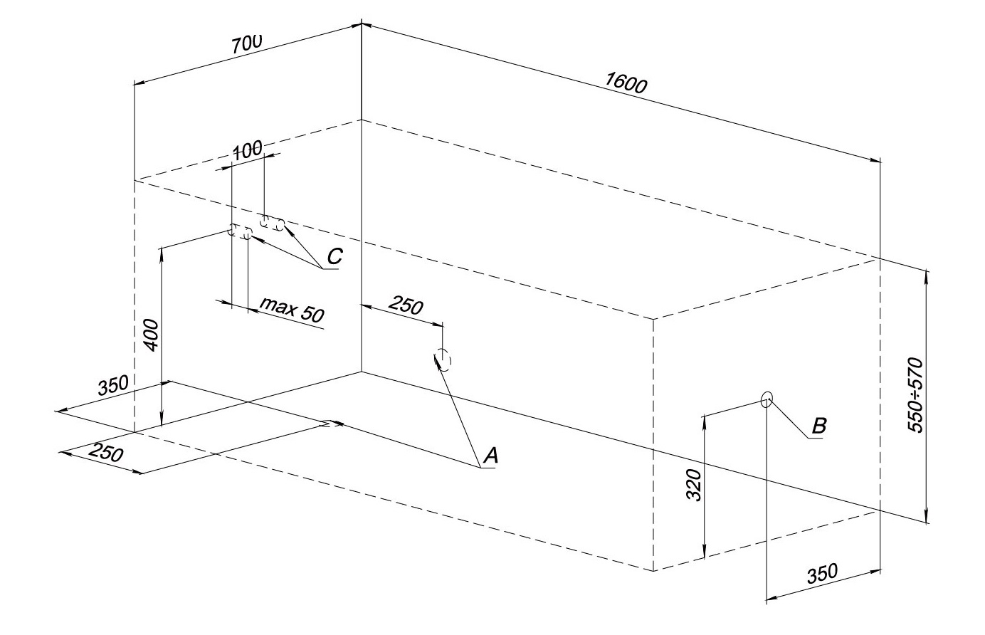 - 1. Ванна акриловая 160х70 Dali без гидромассажа
